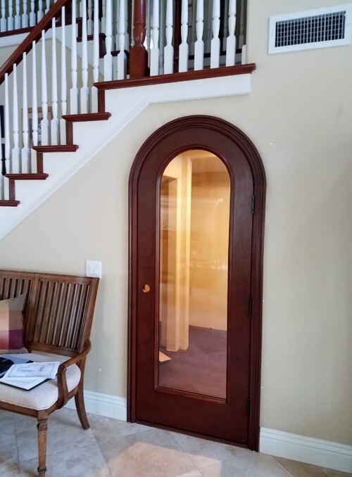 The use of Mortise & Tenon joints, Laminated Veneer Lumber cores and automatic door bottoms gives our hand carved wine cellar doors exceptional strength, quality, insulation values and resistance to warping. All in order to work in unison with the rest of your wine cellar to protect your wine collection.